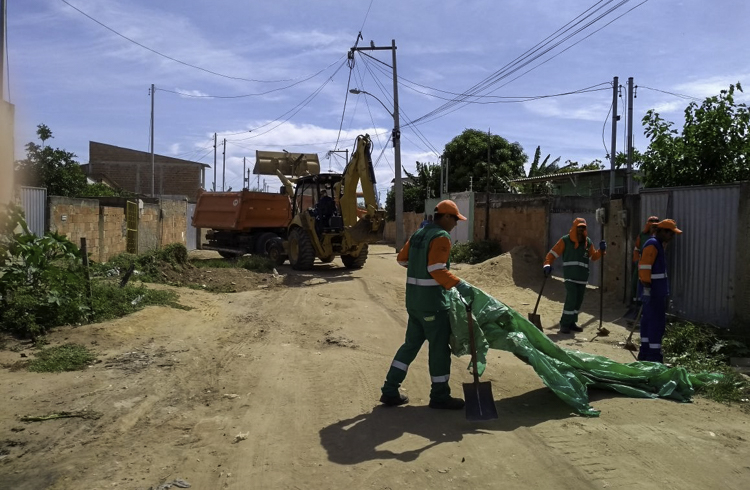 Ainda segundo a prefeitura, o trabalho também é realizado na Rua Peró de Góis e na Pracinha do SENAI, com auxílio de um caminhão caçamba e uma retroescavadeira, que estão dando apoio às equipes de limpeza.