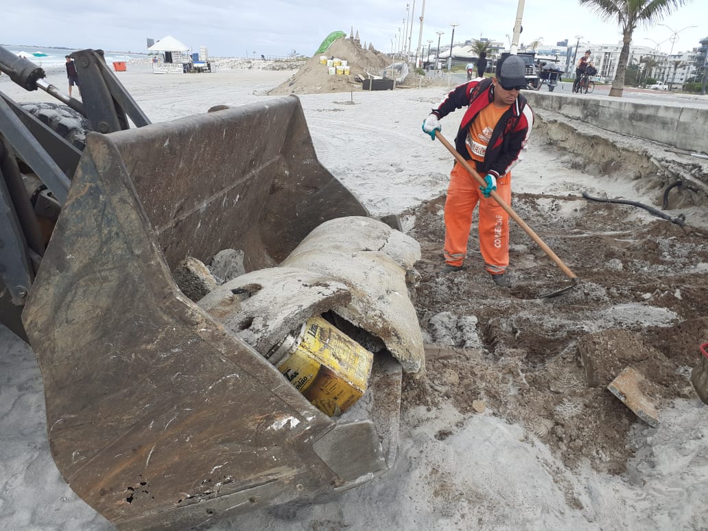 Equipes da Comsercaf continuam encontrando vestígios da última ressaca, que atingiu a Praia do Forte, em Cabo Frio, no mês passado. Durante a limpeza realizada nesta sexta-feira, 23, as equipes realizaram a retirada de manilhas e estruturas de antigos quiosques que ficaram aparentes, após a redução do volume de areia causada pelo avanço do mar. O material está localizado na área de práticas esportivas, em frente à Praça das Águas.