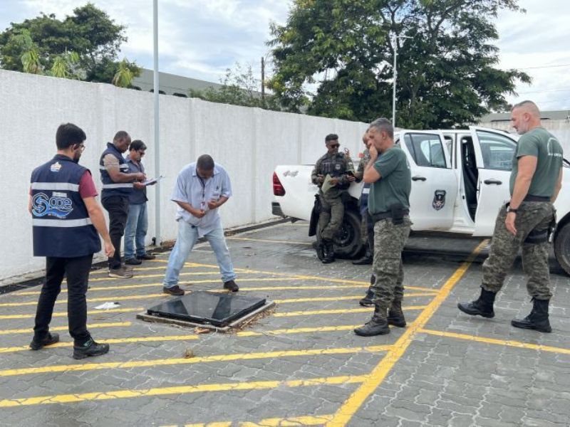 Durante a vistoria, os agentes constataram extravasamento de efluentes para a rede de drenagem da rua ao lado do supermercado, que foi devidamente autuado pelos órgãos competentes, e terá 15 dias para resolver o problema de forma definitiva.