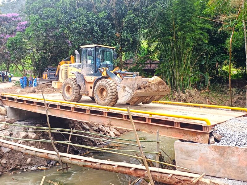Para resolver o problema, a prefeitura atuou durante todo o dia na instalação de uma nova ponte na localidade, que teve o acesso liberado pouco antes das 19h, restabelecendo o acesso e a segurança para motoristas e pedestres.