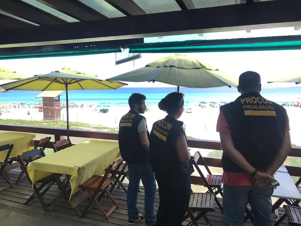 O Procon Municipal de Arraial do Cabo autuou e notificou dois quiosques na Orla da Praia Grande por cobrança de venda da mesa e consumação mínima, o que é proibido segundo o inciso I do artigo 39 do Código de Defesa do Consumidor (CDC).