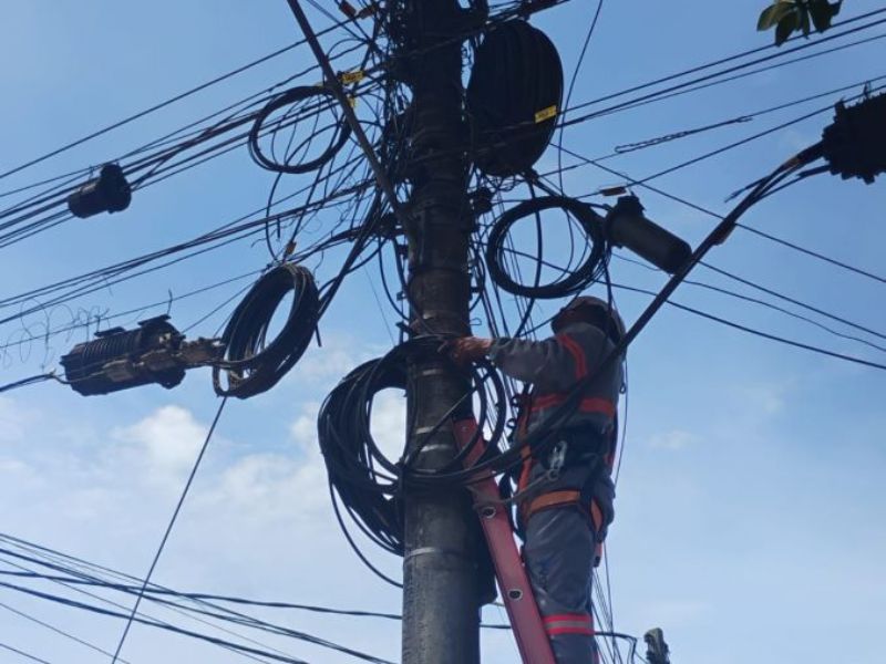 Com objetivo de remover cabos e fios inutilizados que seguem em postes da cidade, a equipe da Comfis contou com a colaboração de representantes de empresas de telefonia e internet, que auxiliaram na remoção da fiação.