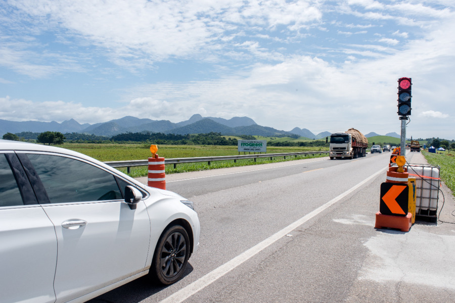 O engenheiro Raphael Thuler, sócio da Novacap Engenharia e responsável pelas obras no local, explicou que a opção pela instalação do semáforo solar foi uma orientação da Auto Pista Fluminense e da Polícia Rodoviária Federal para oferecer maior segurança aos usuários da estrada e aos trabalhadores que dia e noite atuam no loca.