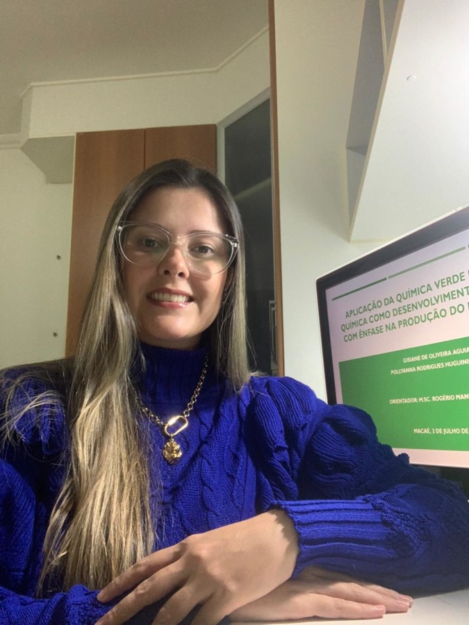 Desse modo, visando pensar em soluções verdes para a indústria química de plástico, as estudantes do 10º período de Engenharia Química, Gisiane de Oliveira Aguiar e Pollyanna Rodrigues Huguinim Souza, desenvolveram o TCC “Aplicação da química verde na indústria química como desenvolvimento sustentável com ênfase na produção do plástico verde”. O trabalho obteve nota 10 na banca composta pela professora doutora Priscila Martins Barros Câmara, pelo professor mestre Warlley Antunes e ainda pelo professor mestre e orientador do projeto Rogério Manhães Soares.