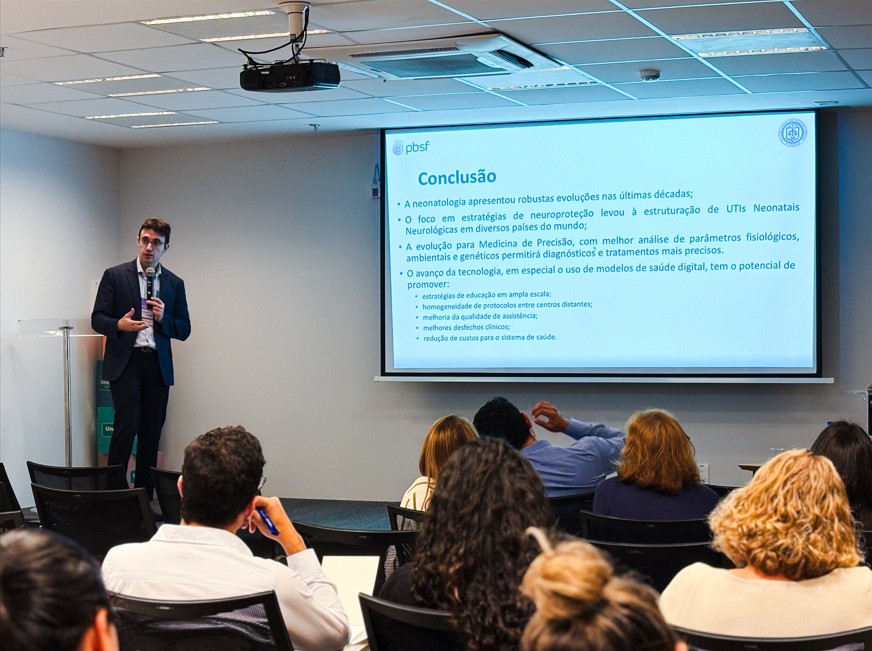 A programação do primeiro dia teve foco no aprimoramento técnico das equipes. Participaram como palestrantes o Dr. Nicolas Rodrigues Ferreira, a Dra. Renata Lorenzetti e o Dr. Gabriel Fernando Todeschi, da empresa Protecting Brains & Saving Futures (PBSF). Eles conduziram cursos sobre assuntos essenciais, incluindo aEEG e convulsões neonatais, fundamentos do NIRS, asfixia perinatal, hipotermia terapêutica, estratégias de neuroproteção em prematuros, monitoramento multimodal e análise prática de casos clínicos.