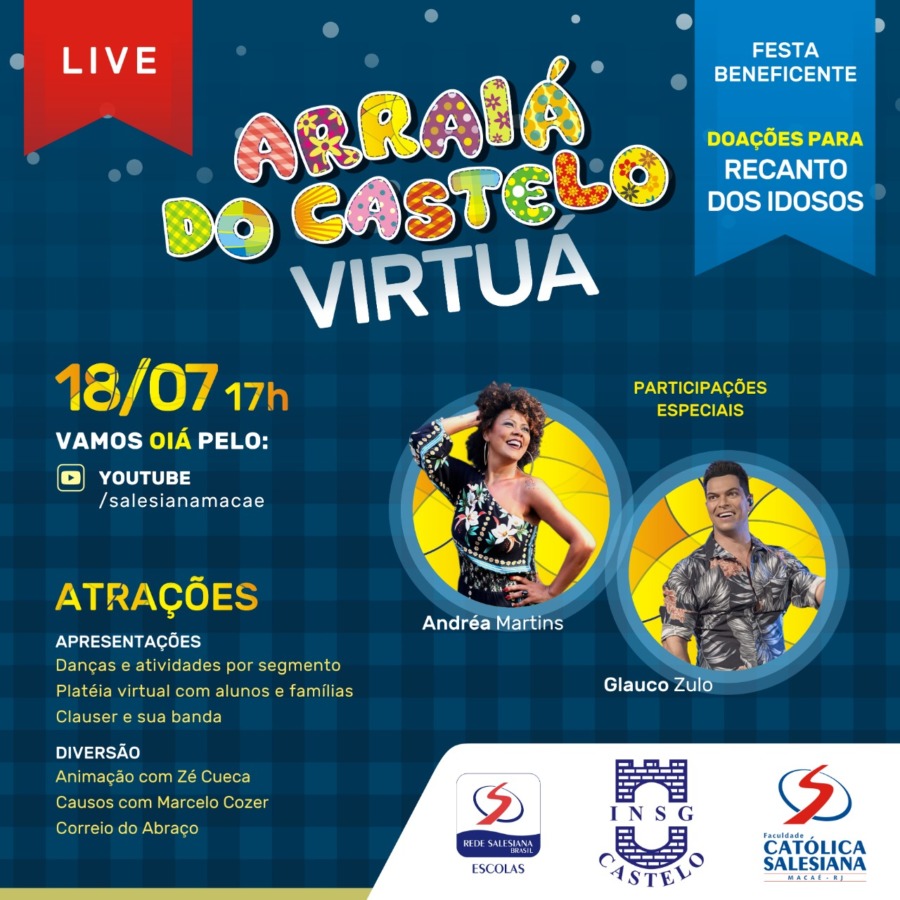 Solidariedade, amor ao próximo e música boa farão parte do Arraiá Virtuá do Colégio Castelo e Faculdade Católica Salesiana de Macaé. A live beneficente, com shows de Andréa Martins, Glauco Zulo e do professor de música Clauser Guedes, tem o objetivo de ser um momento de encontro, confraternização e solidariedade.