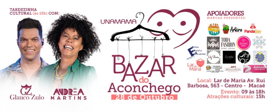 Está tudo pronto para o Bazar Aconchego da Unamama (União Macaense de Combate ao Câncer de Mama). O evento será realizado na próxima quarta-feira (28), no Lar de Maria, das 9h às 18h. Na programação, a partir das 15h, tardezinha cultural com os cantores Glauco Zulo e Andréa Martins.