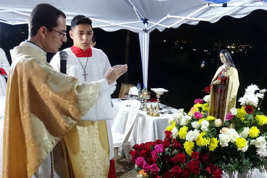 Na noite da última segunda (1º/10), mais de 100 devotos estiveram reunidos no bairro Novo Horizonte para, em comunhão com toda a Igreja, celebrarem a memória de Santa Teresinha, padroeira daquela comunidade, pertencente à Paróquia Santo Antônio.