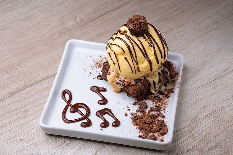 Descrição: Taça trufada de chocolate, doce de leite e praliné de amêndoas, finalizada com creme e um leve toque de café.