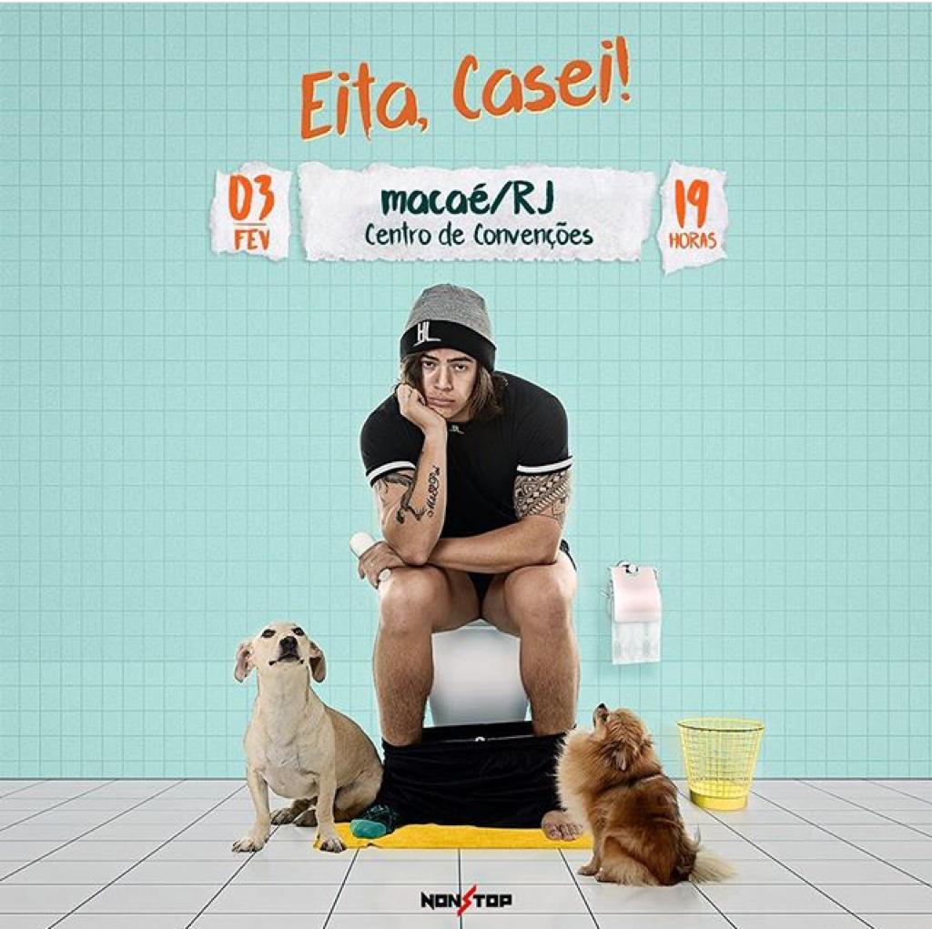 O também cantor e youtuber apresenta o show Eita, Casei, às 19h, no Centro de Convenções Jornalista Roberto Marinho.