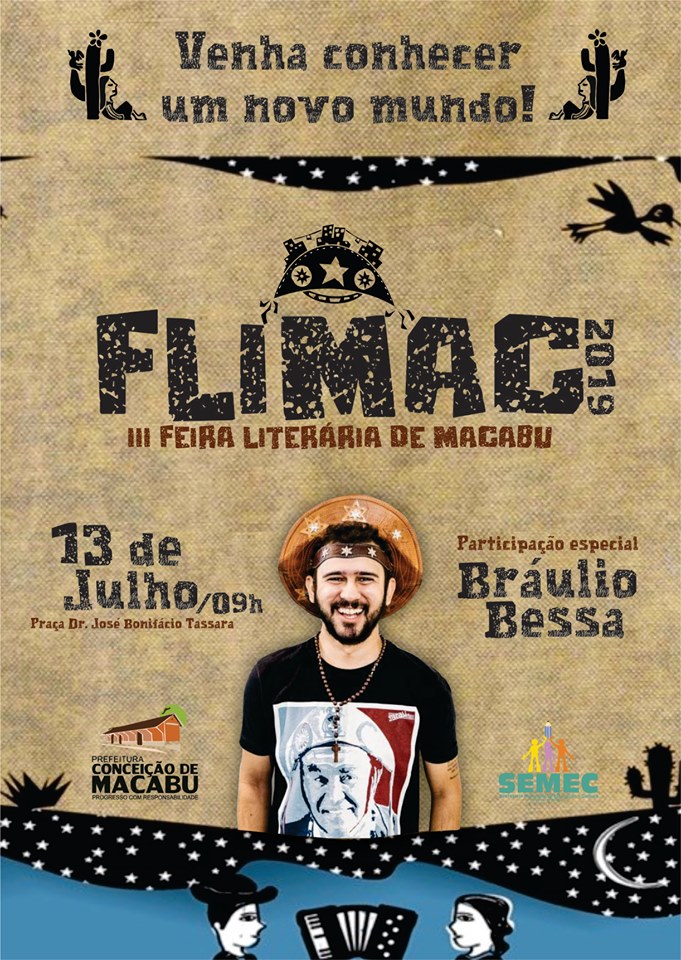 Um pouco da cultura nordestina será apresentada na 3ª Feira Literária de Macabu (Flimac) em Conceição de Macabu neste sábado (13), às 9h, na Praça José Bonifácio Tassara. Neste ano, o evento terá como convidado, o poeta Bráulio Bessa, que fará apresentação em formato de um talk show, com um bate-papo literário e na companhia do trio Forró de Doido.