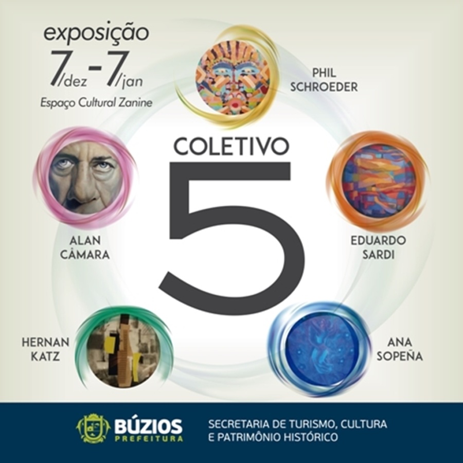 O Espaço Zanine, em Búzios, na Região dos Lagos, recebe nesta sexta-feira (07), a Exposição Coletivo Cinco. Cinco artistas, com diferentes nacionalidades e estilos, estarão expondo juntos. A mostra poderá ser visitada até o dia 07 de janeiro.