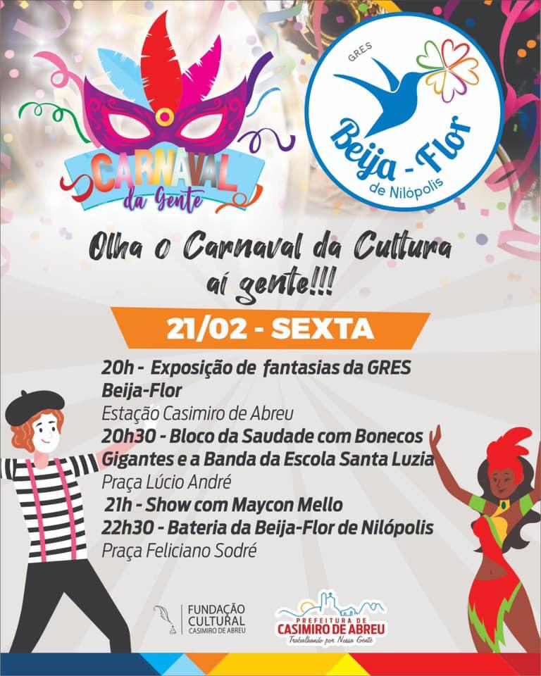 Em Casimiro de Abreu, programação de carnaval terá show da Escola de Samba Beija-Flor
