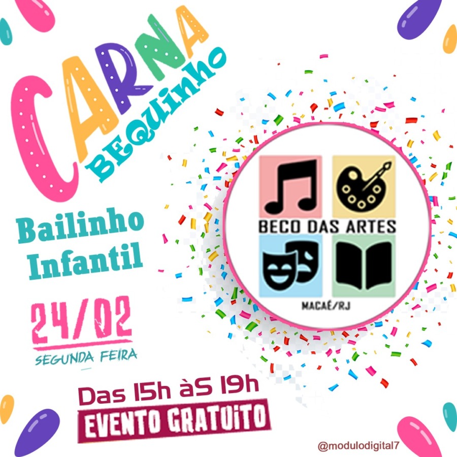 Em Macaé, o Beco das Artes, localizado na Praia do Pecado, promove na segunda-feira de carnaval (24), o CarnaBequinho, bailinho infantil. Com uma programação super variada, a folia no Beco das Artes está garantida para os pequenos.