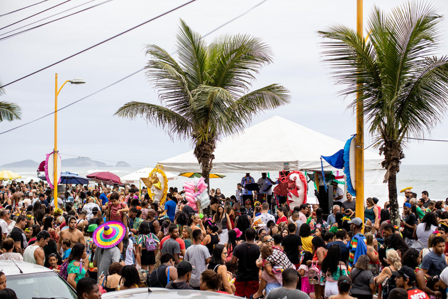 O repertório da Carioca.com foi formado por marchinhas de Carnaval, sucessos de axé music, forró, baião e outros hits.  Na orla da Praia dos Cavaleiros, a criatividade nas fantasias, principalmente das crianças, foi um dos principais quesitos da folia. Eram princesas, piratas, mulher maravilha, batman, homem aranha, bailarina, egípcia e fada.