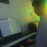 Bernardo, aluno de piano, gravou o vídeo em casa, com auxílio da mãe