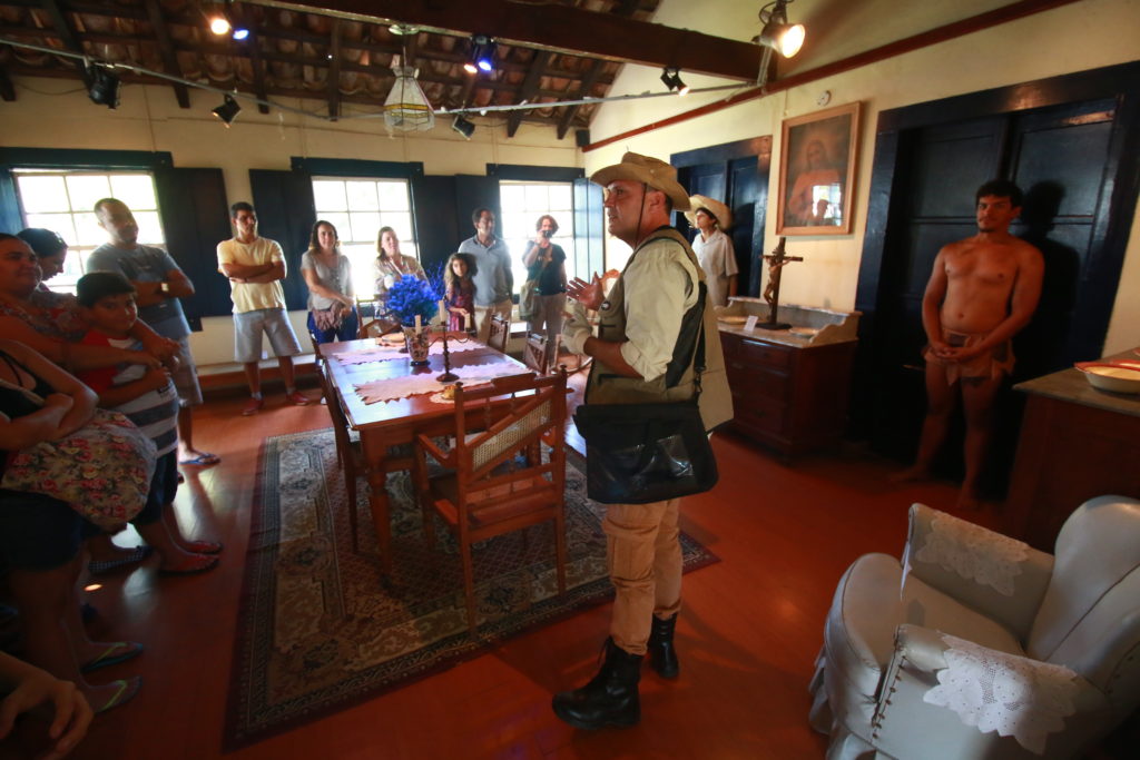 Antigo proprietário do imóvel, Dr. Bento Costa Junior recebe o público visitante e propõe uma “consulta”. Um arqueólogo, um sambaquiano, um pescador e uma mulher riostrense também fazem a recepção e conta a história remota de Rio das Ostras, com a participação dos visitantes.
