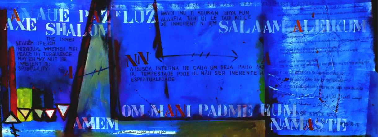 Com uma bagagem cheia de leituras, músicas, cores, texturas e recortes, que vem de uma longa experiência, a pintora imprimiu, em 13 quadros, ícones de fortes representações pessoais e do profundo estudo sobre religião e religiosidade.