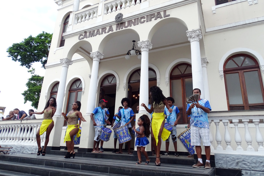 Nas escadarias do centenário prédio e parte da praça Gê Sardenberg, a bateria do grupo Amigos do Samba comandou o som com clássicos que atraíram a atenção do público. Eles foram acompanhados pelas passistas do Arte de Sambar, que atua no bairro Aroeira há 10 anos.
