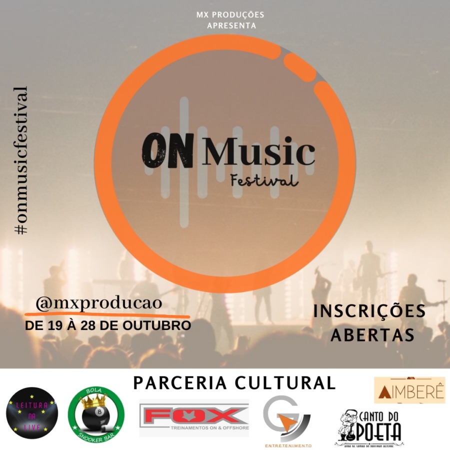 Com a pandemia da Covid-19, vários eventos culturais de Macaé estão sendo realizado pelas plataformas virtuais, entre elas, o instagram. A partir desta segunda-feira, dia 28, estão  abertas as inscrições para o Festival On Music, que é será um festival de música online, com objetivo de valorizar e de abrir um espaço de divulgação para os trabalhos autorais, além de premiação em dinheiro, visando assim, motivar os artistas, sejam cantores ou banda, a mandarem seus materiais para a competição. O material musical deverá estar em formato de vídeo.