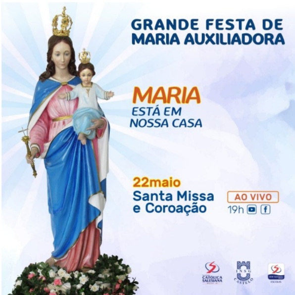 A Santa Missa e a Coroação de Nossa Senhora Auxiliadora serão transmitidas, sem a presença de público, na sexta-feira (22), a partir das 19 horas, por meio do canal “Salesiana Macaé” no Youtube, e nas páginas oficiais do Colégio Castelo e Católica Salesiana no Facebook.