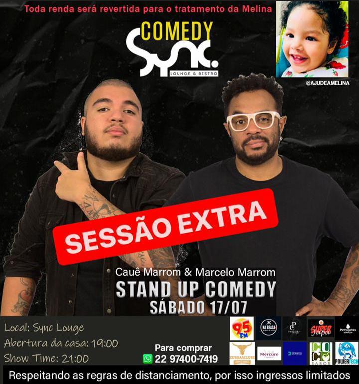 “Eu e o Cauê Marrom, que é meu filho, humorista também, vamos fazer um show de stand up, depois de tanto tempo sem fazer porque não podia, agora que liberaram, reduzido; a casa comporta não sei quantas pessoas, reduzido, distanciamento, para poder ser legal para todo mundo. Vai ser na Sync Louge, que fica nos Cavaleiros, numa casa muito conhecida aqui em Macaé. Quinta-feira (8), nós fizemos uma sessão. Esgotou. Obrigado, público de Macaé, sempre prestigiando a gente. Lançamos uma sessão extra no sábado (17), que ainda tem pouquíssimos ingressos, e aí tem uma coisa especial. No sábado, toda a renda vai ser revertida para a menina Melina. Segue aí @ajudeamelina, porque essa menina é sensacional e está precisando da gente. Então, a grana vai toda para a família dela para poder a gente ajudar a Melina, que é uma doçura de criança. Motivo bom para você dar risada e colaborar. Sync Louge. Sábado, às 21h”, convida o Marcelo Marrom, em vídeo nas páginas das redes sociais dedicadas à Melina.