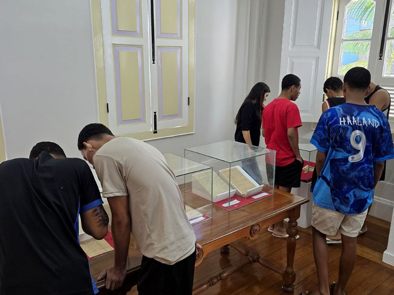 Durante a visita guiada, os adolescentes, que foram recebidos pela historiadora do museu, Gisele Muniz, conheceram a história do museu, os manuscritos de César Mello, além de quadros, objetos e outros patrimônios preservados no espaço.