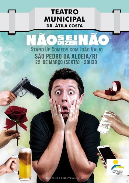 O Teatro Municipal Dr. Átila Costa, em São Pedro da Aldeia, na Região dos Lagos, apresenta nesta sexta-feira (22) o espetáculo de humor “Não Sei Dizer Não”, estrelado pelo comediante João Valio, no formato Stand Up Comedy. No show, muita interatividade com a plateia e aborda temas do cotidiano, como relacionamentos, tatuagens e viagens. Um dos destaques da atração será a gravação do quadro “Tinder ao Vivo” para o Youtube. Os ingressos estão à venda em comércios locais e na bilheteria do Teatro pelo valor de R$ 20 (antecipado). Na hora, a entrada vai custar R$ 30. Quem optar por adquirir os ingressos pelo site https://www.sympla.com.br/joao-valio-em-sao-pedro-da-aldeia-nao-sei-dizer-nao---stand-up-comedy__471549 terá R$ 10 de desconto, inserindo o código promocional “RISADA”.