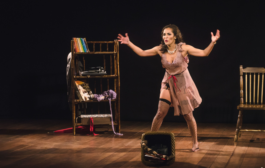 Com base realista, a encenação organiza seus quadros cênicos a partir de alguns jogos dramáticos em que elementos cenográficos, objetos e adereços, assumem posição de figuras humanas com as quais a personagem dá vasão à sua imaginação. Entrecortada por narrativas que interrompem o fluxo da representação, a encenação utiliza os elementos da memória da personagem para construir situações em que surgem outros espaços, outros tempos e outros personagens. Não se trata de sonho ou desvario, apenas, mas também de recobrar os tempos passados e, assim, reinventar novas possibilidades de viver o presente.