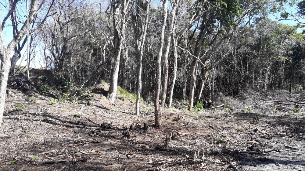 Mourões demarcavam lotes a venda em uma área de vegetação de mata atlântica.
