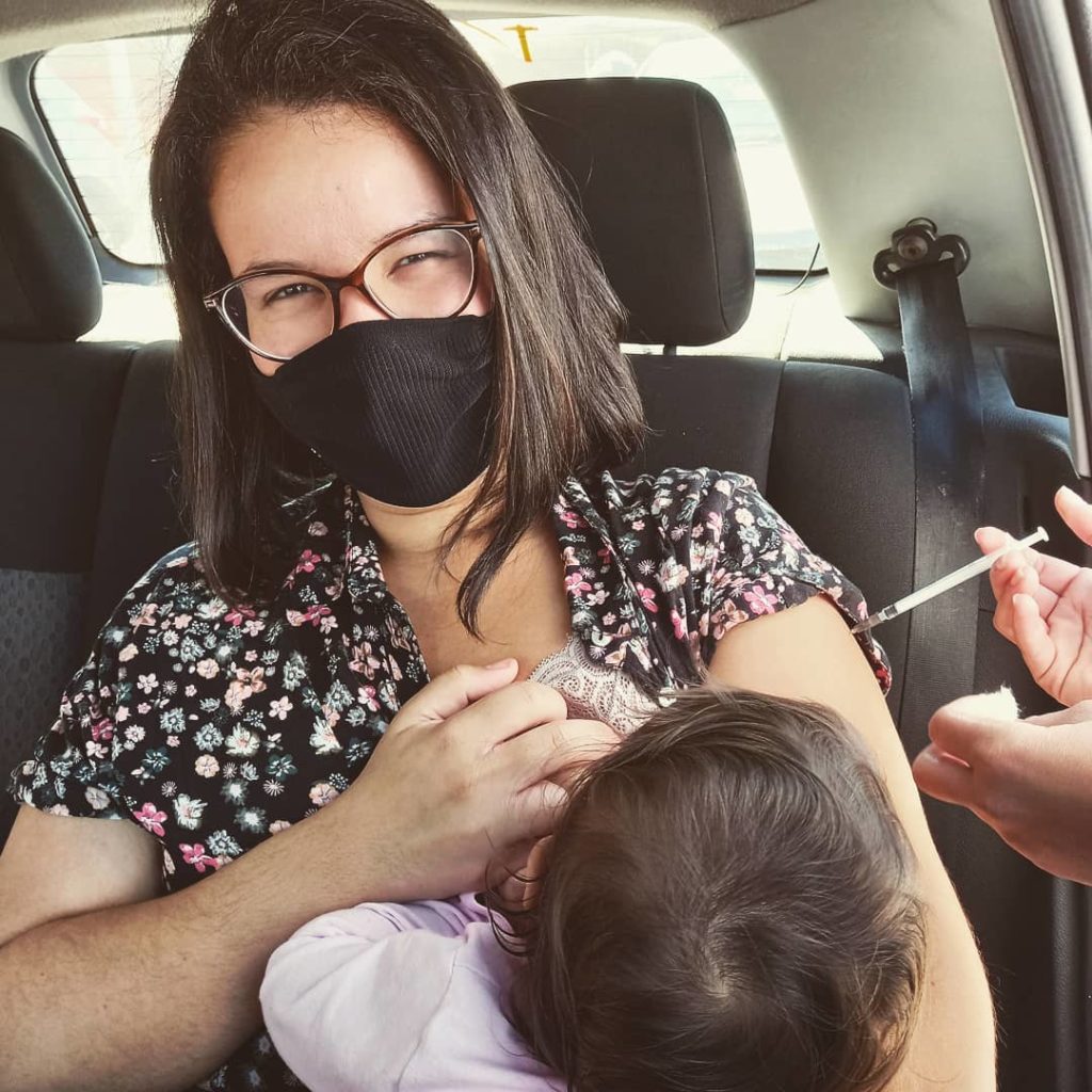 A cidade já estava vacinando lactantes com filhos até 1 ano. Iasmin Vaz, mãe da pequena Helena, de 1 ano, recebeu a primeira dose da vacina contra a Covid-19, nesta sexta-feira (2), em Macaé. “Um dia tão esperado e sonhado! Glória a Deus pela ciência! Uma vacina que vale por dois”, disse.