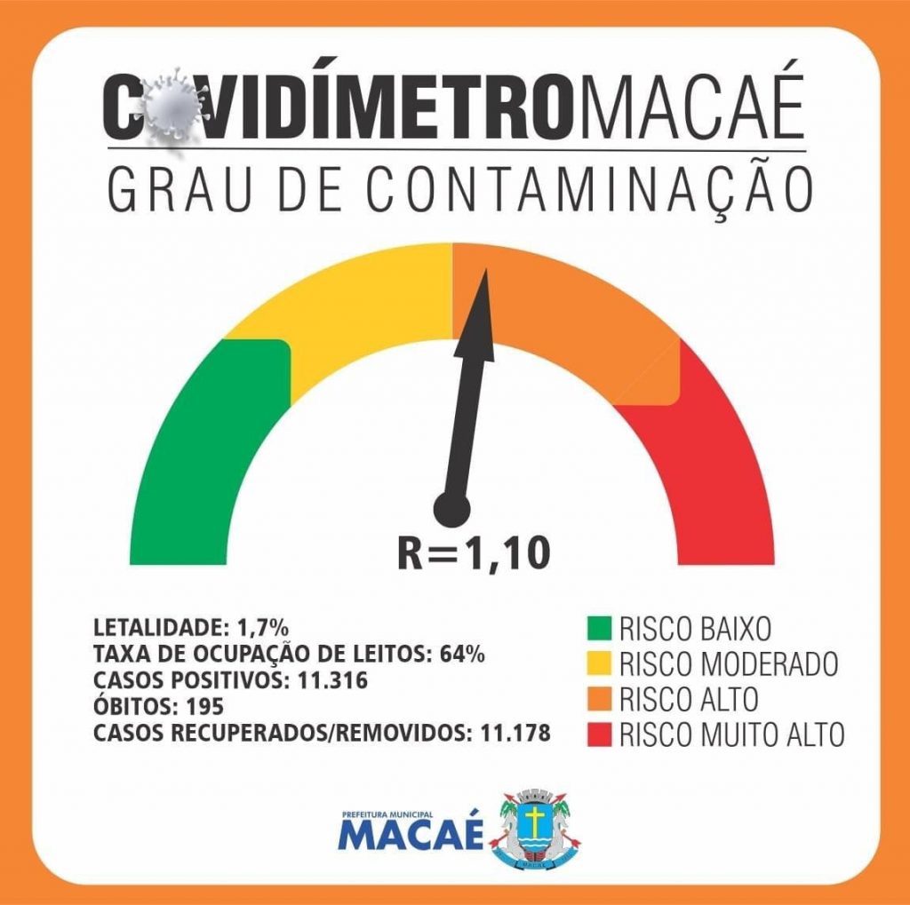 O município tem 11.316 casos de coronavírus confirmados. Destes, 11.178 são pacientes recuperados/removidos (total de recuperados mais quantidade de óbitos). Macaé contabiliza 19 óbitos por Covid-19. As taxas do município, nesta sexta-feira são: de reprodução do vírus 1,10; e de letalidade 1,7%.