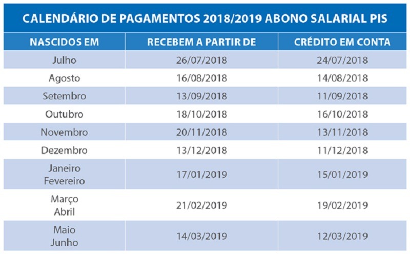 A instituição disponibiliza R$ 16,3 bilhões para 22,3 milhões de beneficiários em todo o calendário. Tem direito ao benefício o trabalhador inscrito no Programa de Integração Social (PIS) ou no Programa de Formação do Patrimônio do Servidor Público (PASEP) há pelo menos cinco anos e que tenha trabalhado formalmente por pelo menos 30 dias em 2017 com remuneração mensal média de até dois salários mínimos. Também é necessário que os dados estejam corretamente informados pelo empregador na Relação Anual de Informações Sociais (RAIS), ano-base 2017.