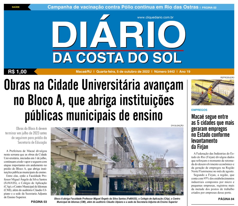 Redação: Rua Tupinambás 122 Gloria – Macaé/RJ