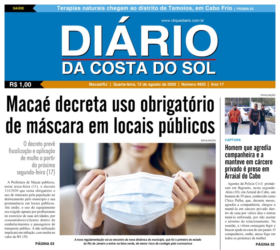 Edições Impressas Edição de quarta-feira 12/08/2020 nº 4920 Publicado em 12/08/2020 - 05:00 Escrito por Fernando Vitor Notícias relacionadas:destaque Seguinte Edição de quinta-feira 13/08/2020 nº 4921 Anterior Edição de terça-feira 11/08/2020 nº 4919 Fernando Vitor Notícias Recentes Cabo Frio12 horas atrás Arte e solidariedade marcam a 1ª Mostra de Dança Regional de Tamoios Cidades18 horas atrás Região serrana de Macaé recebe 1º X-Force Passeio de Quadriciclo e Aranha neste domingo (26) Polícia18 horas atrás Polícia apreende mais de meio quilo de drogas no Loteamento São João, em Rio das Ostras Saúde2 dias atrás Eventos esportivo e cultural reforça campanha do Outubro Rosa em Rio das Ostras nesse domingo, 26 Edições Impressas2 dias atrás Sábado a segunda-feira 25 a 27/10/2025 nº 6197 Cidades2 dias atrás Shopping Plaza Macaé oferece programação gratuita com feira de adoção e show de pagode neste fim de semana Cidades2 dias atrás 32º BPM completa 23 anos com solenidade de celebração e reconhecimento aos policiais Armação dos Búzios2 dias atrás Búzios celebra esporte e superação com XC RUN 2025 Araruama2 dias atrás Araruama promove saúde, lazer e cidadania em evento comunitário Arraial do cabo2 dias atrás Educação e sustentabilidade se encontram para jovens de Arraial do Cabo Clique Diário E. L. Mídia Editora Ltda CNPJ: 09.298.880/0001-07 Redação: Rua Tupinambás 122 Gloria – Macaé/RJ comercial@diariocs.com (22) 2765-7353 (22) 999253130 Mais lidas da semana Cultura6 dias atrás Silva Jardim anuncia shows gratuitos de samba e pagode para o fim de semana Cultura6 dias atrás Música, emoção e cores: Rodrigo Pontes apresenta show especial em Rio das Ostras Cabo Frio6 dias atrás Atletas de várias cidades se enfrentam em competição de Muay Thai em Cabo Frio Cabo Frio6 dias atrás Serviços essenciais permanecem ativos durante ponto facultativo em Cabo Frio