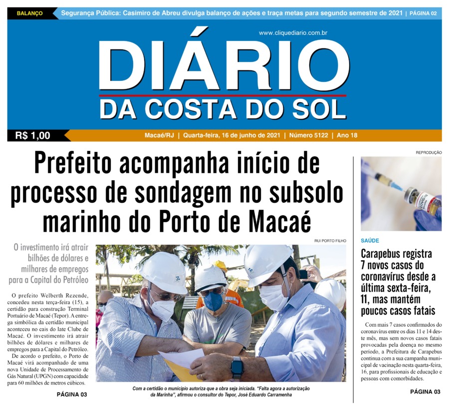 Edições Impressas Edição de quarta-feira 16/06/2021 nº 5122 Publicado em 16/06/2021 - 02:37 Escrito por Fernando Vitor Notícias relacionadas:destaque Seguinte Edição de quinta-feira 17/06/2021 nº 5123 Anterior Edição de terça-feira 15/06/2021 nº 5121 Fernando Vitor Notícias Recentes Cultura2 horas atrás Teatro de Rio das Ostras recebe 2 espetáculos de dança nesse fim de semana Arraial do cabo2 horas atrás FIPAC oferece serviços de saúde e prevenção ao câncer de próstata em Arraial do Cabo Arraial do cabo2 horas atrás Resultado preliminar do concurso de Arraial já está no ar pelo IBAM Edições Impressas2 horas atrás Edição de sábado a segunda-feira 15 a 17/11/2025 nº 6213 Cidades4 horas atrás Shopping Plaza Macaé inicia programação de Natal neste fim de semana Cabo Frio4 horas atrás Disputa em dobro marca encerramento em Cabo Frio do circuito de surf Cabo Frio20 horas atrás Agentes de Cabo Frio recebem novo treinamento técnico para atuar em casos de poluição sonora Cabo Frio20 horas atrás Homem procurado por latrocínio é detido por agentes em Cabo Frio Cabo Frio20 horas atrás Representante da Guarda Civil de Cabo Frio compete na etapa final ao lado de jovens atletas Polícia20 horas atrás Prefeito de Rio das Ostras volta de Brasília com esperança de novos investimentos Clique Diário E. L. Mídia Editora Ltda CNPJ: 09.298.880/0001-07 Redação: Rua Tupinambás 122 Gloria – Macaé/RJ comercial@diariocs.com (22) 2765-7353 (22) 999253130 Mais lidas da semana Cultura1 dia atrás Adilson Lopes apresenta exposição “Trajetória” em Casimiro de Abreu Cidades4 dias atrás Servidores de Rio das Ostras participam de treinamento do Estado em Búzios Polícia3 dias atrás Farmácia é interditada e uma pessoa é presa em Rio das Ostras em operação da Polícia Federal Esporte21 horas atrás De Saquarema para o Brasileirão: Vasco troca gramado de São Januário