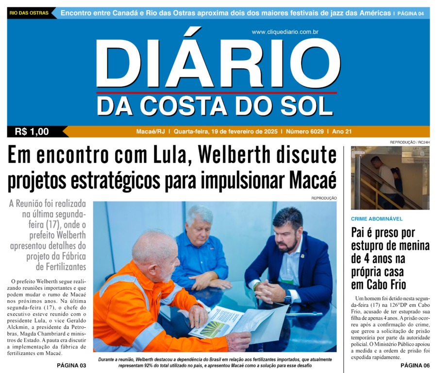 Redação: Rua Tupinambás 122 Gloria – Macaé/RJ