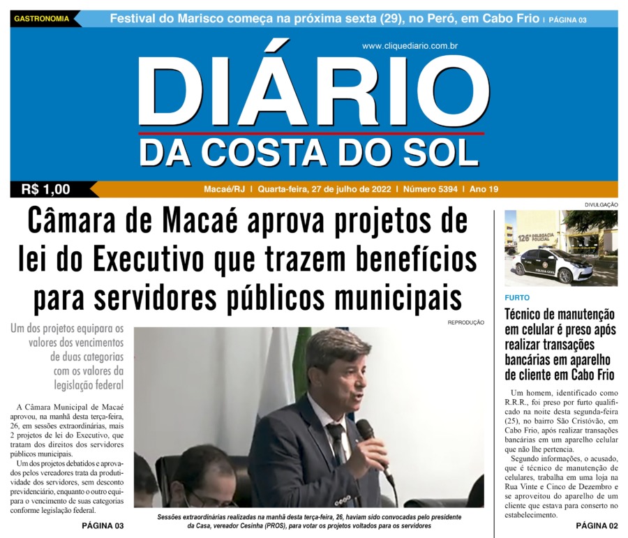 Redação: Rua Tupinambás 122 Gloria – Macaé/RJ