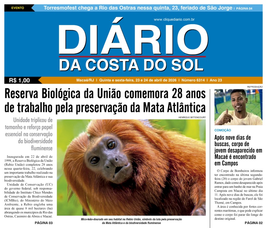 Edições Impressas Edição de quinta e sexta-feira 23 e 24/04/2026 nº 6314 Publicado em 23/04/2026 - 09:48 Escrito por Redação Notícias relacionadas: Anterior Edição de terça e quarta-feira 21 e 22/04/2026 nº 6313 Redação Notícias Recentes Edições Impressas9 segundos atrás Edição de quinta e sexta-feira 23 e 24/04/2026 nº 6314 Cidades2 horas atrás Macaé celebra o Dia Nacional do Choro com show na Imbetiba Polícia17 horas atrás Homem é baleado em tentativa de homicídio em um bar em Saquarema Esporte18 horas atrás Time 100% indígena de Maricá, E.C. Originários vira notícia internacional Saúde18 horas atrás Paciente internado em Rio das Ostras consegue transferência para hospital estadual depois de 6 dias Cidades18 horas atrás Fiscalização de trânsito é intensificada em Campos durante o feriado Esporte18 horas atrás Atleta de Macaé representará a seleção brasileira de Karatê no Panamá Arraial do cabo18 horas atrás Mais de 40 pacientes encontram alívio da dor com projeto de reabilitação em Arraial do Cabo Cabo Frio18 horas atrás Yoga no Forte reúne participantes em manhã de saúde e qualidade de vida em Cabo Frio Cabo Frio18 horas atrás Colisão em retorno de via mobiliza atendimento médico em Cabo Frio Clique Diário E. L. Mídia Editora Ltda CNPJ: 09.298.880/0001-07 Redação: Rua Tupinambás 122 Gloria – Macaé/RJ comercial@diariocs.com (22) 2765-7353 (22) 999253130 Mais lidas da semana Cidades6 dias atrás Carapebus promove evento especial voltado ao desenvolvimento infantil Destaque3 dias atrás Jovem de Rio das Ostras conquista o bronze nos Jogos Sul-americanos da Juventude 2026 Polícia6 dias atrás Ação conjunta da polícia gera prejuízo de mais de R$ 12 mil ao tráfico em Macaé Esporte18 horas atrás Atleta de Macaé representará a seleção brasileira de Karatê no Panamá
