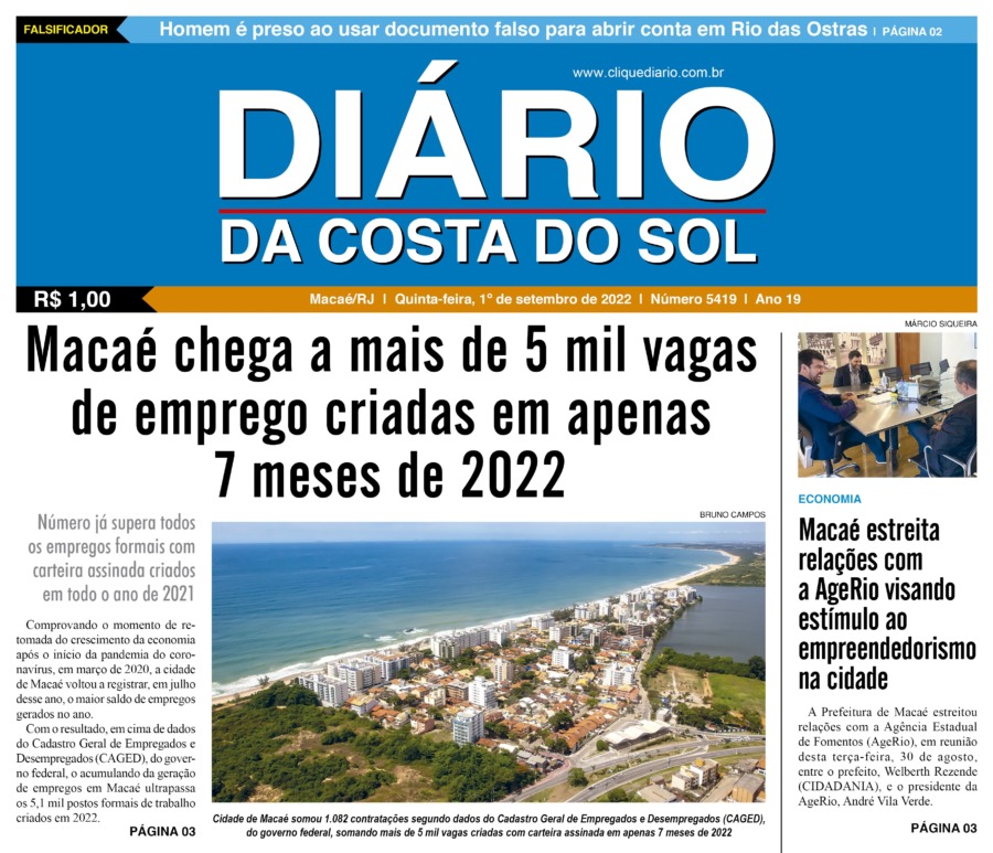 Edições Impressas Edição de quinta-feira 01/09/2022 nº 5419 Publicado em 31/08/2022 - 23:55 Escrito por Fernando Vitor Notícias relacionadas: Seguinte Edição de sexta-feira 02/09/2022 nº 5420 Anterior Edição de quarta-feira 31/08/2022 nº 5418 Fernando Vitor Notícias Recentes Cultura18 horas atrás Teatro de Rio das Ostras recebe 2 espetáculos de dança nesse fim de semana Arraial do cabo18 horas atrás FIPAC oferece serviços de saúde e prevenção ao câncer de próstata em Arraial do Cabo Arraial do cabo18 horas atrás Resultado preliminar do concurso de Arraial já está no ar pelo IBAM Edições Impressas18 horas atrás Edição de sábado a segunda-feira 15 a 17/11/2025 nº 6213 Cidades19 horas atrás Shopping Plaza Macaé inicia programação de Natal neste fim de semana Cabo Frio20 horas atrás Disputa em dobro marca encerramento em Cabo Frio do circuito de surf Cabo Frio1 dia atrás Agentes de Cabo Frio recebem novo treinamento técnico para atuar em casos de poluição sonora Cabo Frio1 dia atrás Homem procurado por latrocínio é detido por agentes em Cabo Frio Cabo Frio1 dia atrás Representante da Guarda Civil de Cabo Frio compete na etapa final ao lado de jovens atletas Polícia1 dia atrás Prefeito de Rio das Ostras volta de Brasília com esperança de novos investimentos Clique Diário E. L. Mídia Editora Ltda CNPJ: 09.298.880/0001-07 Redação: Rua Tupinambás 122 Gloria – Macaé/RJ comercial@diariocs.com (22) 2765-7353 (22) 999253130 Mais lidas da semana Cultura2 dias atrás Adilson Lopes apresenta exposição “Trajetória” em Casimiro de Abreu Polícia4 dias atrás Farmácia é interditada e uma pessoa é presa em Rio das Ostras em operação da Polícia Federal Cidades4 dias atrás Servidores de Rio das Ostras participam de treinamento do Estado em Búzios Cidades3 dias atrás Vereadores de Macaé vão embarcar nesta quinta para participar da COP 30 em Belém