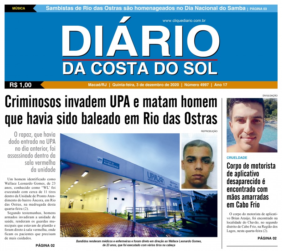 Edições Impressas Edição de quinta-feira 03/12/2020 nº 4997 Publicado em 03/12/2020 - 05:30 Escrito por Fernando Vitor Notícias relacionadas:destaque Seguinte Edição de sexta-feira 04/12/2020 nº 4998 Anterior Edição de quarta-feira 02/12/2020 nº 4996 Fernando Vitor Notícias Recentes Cabo Frio19 horas atrás Estudantes de Cabo Frio brilham em premiação do projeto CaptaAção Armação dos Búzios1 dia atrás Búzios Swim celebra esporte, natureza e turismo na Região dos Lagos Cabo Frio1 dia atrás Educação pública de Cabo Frio colhe frutos com conquistas em competições científicas Edições Impressas1 dia atrás Edição de sábado a segunda-feira 08 a 10/11/2025 nº 6208 Polícia1 dia atrás Moto sem placa é abandonada após fuga de suspeito em Macaé Polícia1 dia atrás Polícia Civil prende homem em flagrante por tráfico de drogas no Parque Aeroporto, em Macaé Iguaba2 dias atrás Menina de Iguaba Grande realiza sonho e conhece o príncipe William no Rio de Janeiro Arraial do cabo2 dias atrás Arraial do Cabo é exemplo de tranquilidade na Região dos Lagos, segundo dados do ISP Arraial do cabo2 dias atrás Festival em Arraial do Cabo promete recorde de público com mais de 15 mil pratos e 10 mil litros de chope Arraial do cabo2 dias atrás Oficina une saúde, cidadania e acolhimento em Arraial do Cabo Clique Diário E. L. Mídia Editora Ltda CNPJ: 09.298.880/0001-07 Redação: Rua Tupinambás 122 Gloria – Macaé/RJ comercial@diariocs.com (22) 2765-7353 (22) 999253130 Mais lidas da semana Arraial do cabo3 dias atrás Arraial do Cabo celebra 3ª edição do Festival de Frutos do Mar com entrada livre; Carol Biazin, Ramona Rox, Liah Soares e mais Meio Ambiente4 dias atrás Programa do governo estadual promove limpeza de rio no Âncora, em Rio das Ostras Meio Ambiente3 dias atrás Ações do Programa Limpa Rio seguem em vários pontos de Rio das Ostras Turismo6 dias atrás Saquarema celebra reconhecimento de projeto pelo Ministério do Turismo