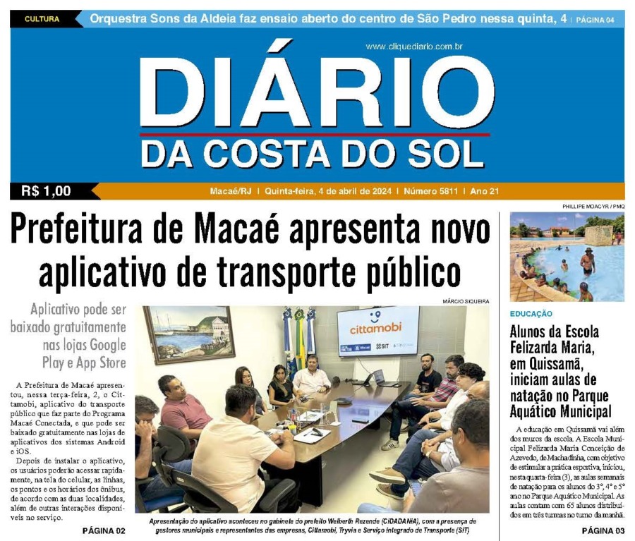 Edições Impressas Edição de quinta-feira 04/04/2024 nº 5811 Publicado em 03/04/2024 - 23:55 Escrito por Redação Notícias relacionadas: Seguinte Edição de sexta-feira, 05/04/2024 nº 5812 Anterior Edição de quarta-feira 03/04/2024 nº 5810 Redação Notícias Recentes Cabo Frio4 horas atrás Cabo Frio promove ação do projeto Capoeiragem para registro de documentário Sem categoria6 horas atrás Cabo Frio recebe iniciativa que vai orientar Política Estadual do Empreendedorismo Edições Impressas10 horas atrás Edição de quinta e sexta-feira 20 e 21/11/2025 nº 6216 Armação dos Búzios1 dia atrás Búzios atinge 80% de ocupação no feriado Cabo Frio1 dia atrás Cabo Frio prepara esquema especial de segurança nas praias e áreas de lazer Cabo Frio1 dia atrás Cabo Frio realiza ações de proteção a fauna após aparecimento de animais em bairros Cabo Frio1 dia atrás Cabo Frio reúne especialistas em evento do programa “Vim Cuidar de Você” Desenvolvimento1 dia atrás Rio das Ostras estreita relações com a Rede Petro BC de olho em eventos do setor de energia em 2026 Cabo Frio1 dia atrás Aula-passeio apresenta riqueza cultural e ambiental de Cabo Frio na Fazenda Campos Novos Cabo Frio1 dia atrás Cabo Frio suspende expediente em órgãos públicos nesta sexta Clique Diário E. L. Mídia Editora Ltda CNPJ: 09.298.880/0001-07 Redação: Rua Tupinambás 122 Gloria – Macaé/RJ comercial@diariocs.com (22) 2765-7353 (22) 999253130 Mais lidas da semana Desenvolvimento1 dia atrás Rio das Ostras estreita relações com a Rede Petro BC de olho em eventos do setor de energia em 2026 Cabo Frio4 horas atrás Cabo Frio promove ação do projeto Capoeiragem para registro de documentário Cultura6 dias atrás Adilson Lopes apresenta exposição “Trajetória” em Casimiro de Abreu Cultura1 dia atrás Moda e Prosa Caipira tem sua 6ª edição nessa quinta, 20, em Saquarema