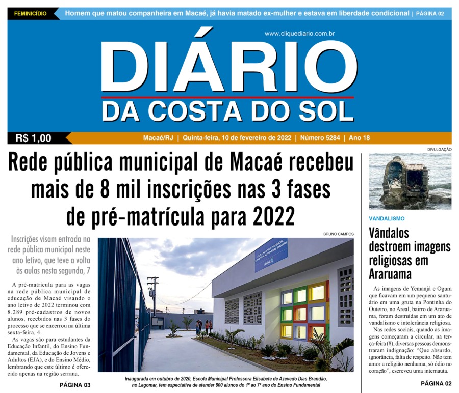 Redação: Rua Tupinambás 122 Gloria – Macaé/RJ