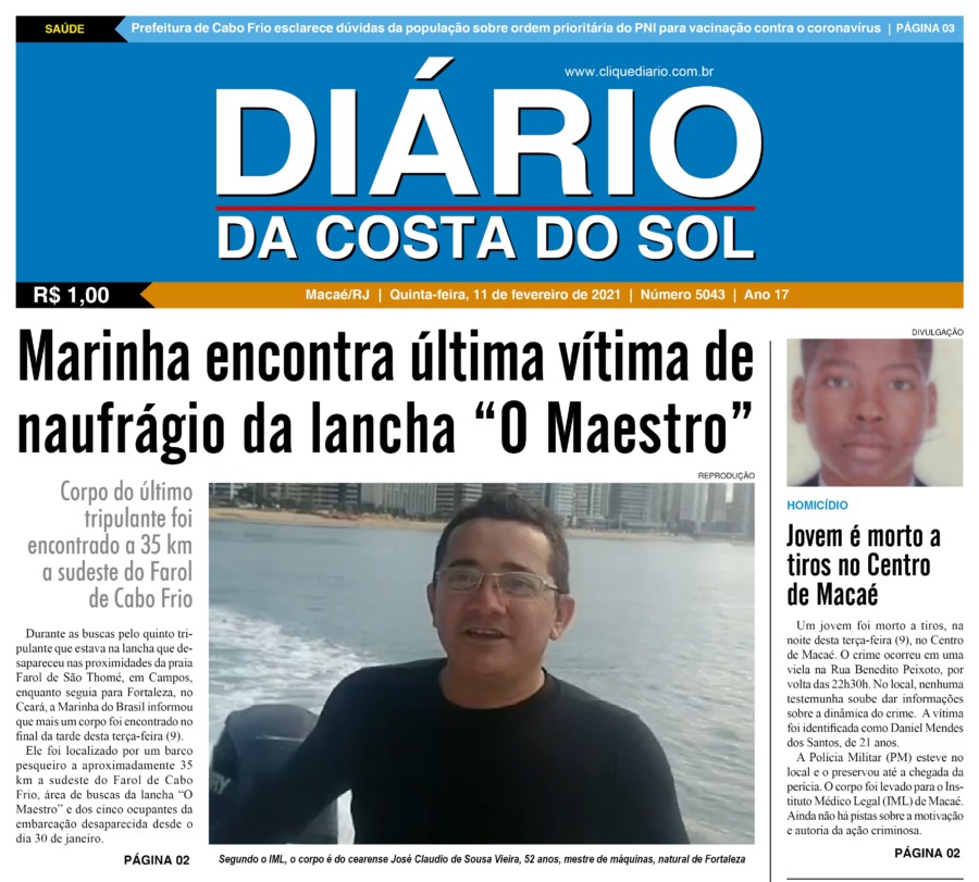 Edições Impressas Edição de quinta-feira 11/02/2021 nº 5043 Publicado em 11/02/2021 - 00:00 Escrito por Fernando Vitor Notícias relacionadas:destaque Seguinte Edição de sexta-feira 12/02/2021 nº 5044 Anterior Edição de quarta-feira 10/02/2021 nº 5042 Fernando Vitor Notícias Recentes Arraial do cabo13 horas atrás Arraial do Cabo promove imersão cultural no Mês da Consciência Negra com o Festival Ubuntu Arraial do cabo13 horas atrás Mutirão de Arraial do Cabo tem ação ambiental que incentiva preservação e recuperação da vegetação Arraial do cabo13 horas atrás Com três dias de shows e sabores, Arraial do Cabo celebra o melhor da culinária praiana Meio Ambiente14 horas atrás Travessia Mico-Leão Dourado tem 1º trecho inaugurado em Silva Jardim Arraial do cabo15 horas atrás Campanha Novembro Azul leva cuidados e prevenção aos trabalhadores do mar em Arraial do Cabo Cidades15 horas atrás Criança de 4 anos morre após broncoaspirar objeto em Campos Cidades15 horas atrás Servidores de Rio das Ostras participam de treinamento do Estado em Búzios Cabo Frio15 horas atrás Noite de pedal em Cabo Frio homenageia a história e o patrimônio local Cidades15 horas atrás Câmara de Macaé aprova Programa Saúde do Homem e regulamenta uso de IA no serviço público Cidades15 horas atrás Quissamã realiza ações do Novembro Azul com foco no cuidado integral à saúde do homem Clique Diário E. L. Mídia Editora Ltda CNPJ: 09.298.880/0001-07 Redação: Rua Tupinambás 122 Gloria – Macaé/RJ comercial@diariocs.com (22) 2765-7353 (22) 999253130 Mais lidas da semana Arraial do cabo6 dias atrás Arraial do Cabo celebra 3ª edição do Festival de Frutos do Mar com entrada livre; Carol Biazin, Ramona Rox, Liah Soares e mais Meio Ambiente7 dias atrás Programa do governo estadual promove limpeza de rio no Âncora, em Rio das Ostras Meio Ambiente6 dias atrás Ações do Programa Limpa Rio seguem em vários pontos de Rio das Ostras Cidades15 horas atrás Servidores de Rio das Ostras participam de treinamento do Estado em Búzios