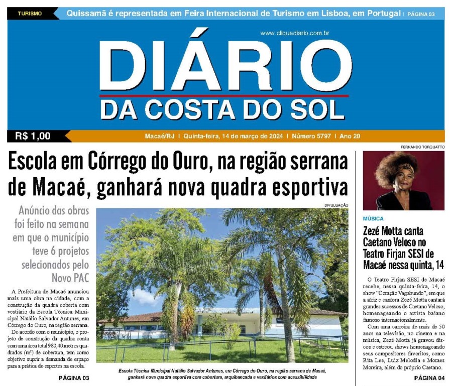 Edições Impressas Edição de quinta-feira 14/03/2024 nº 5797 Publicado em 13/03/2024 - 23:55 Escrito por Redação Notícias relacionadas: Seguinte Edição de sexta-feira 15/03/2024 nº 5798 Anterior Edição de quarta-feira 13/03/2024 nº 5796 Redação Notícias Recentes Cabo Frio7 horas atrás Cabo Frio promove ação do projeto Capoeiragem para registro de documentário Sem categoria9 horas atrás Cabo Frio recebe iniciativa que vai orientar Política Estadual do Empreendedorismo Edições Impressas14 horas atrás Edição de quinta e sexta-feira 20 e 21/11/2025 nº 6216 Armação dos Búzios1 dia atrás Búzios atinge 80% de ocupação no feriado Cabo Frio1 dia atrás Cabo Frio prepara esquema especial de segurança nas praias e áreas de lazer Cabo Frio1 dia atrás Cabo Frio realiza ações de proteção a fauna após aparecimento de animais em bairros Cabo Frio1 dia atrás Cabo Frio reúne especialistas em evento do programa “Vim Cuidar de Você” Desenvolvimento1 dia atrás Rio das Ostras estreita relações com a Rede Petro BC de olho em eventos do setor de energia em 2026 Cabo Frio1 dia atrás Aula-passeio apresenta riqueza cultural e ambiental de Cabo Frio na Fazenda Campos Novos Cabo Frio1 dia atrás Cabo Frio suspende expediente em órgãos públicos nesta sexta Clique Diário E. L. Mídia Editora Ltda CNPJ: 09.298.880/0001-07 Redação: Rua Tupinambás 122 Gloria – Macaé/RJ comercial@diariocs.com (22) 2765-7353 (22) 999253130 Mais lidas da semana Cultura7 dias atrás Adilson Lopes apresenta exposição “Trajetória” em Casimiro de Abreu Cabo Frio7 horas atrás Cabo Frio promove ação do projeto Capoeiragem para registro de documentário Desenvolvimento1 dia atrás Rio das Ostras estreita relações com a Rede Petro BC de olho em eventos do setor de energia em 2026 Cultura1 dia atrás Moda e Prosa Caipira tem sua 6ª edição nessa quinta, 20, em Saquarema