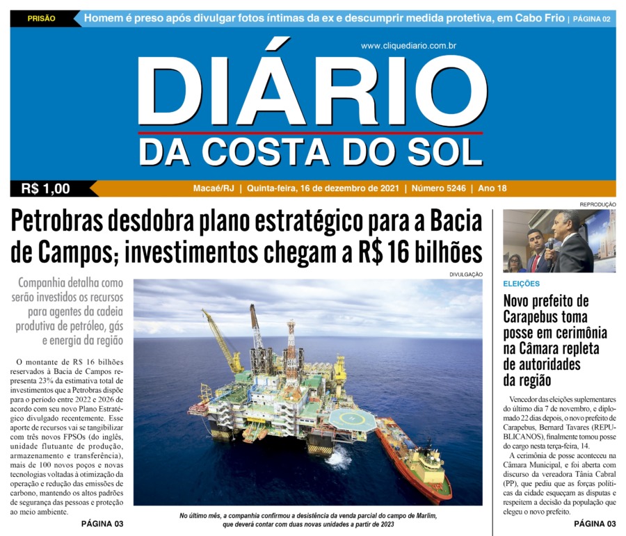 Edições Impressas Edição de quinta-feira 16/12/2021 nº 5246 Publicado em 16/12/2021 - 00:01 Escrito por Fernando Vitor Notícias relacionadas: Seguinte Edição de sexta-feira 17/12/2021 nº 5247 Anterior Edição de quarta-feira 15/12/2021 nº 5245 Fernando Vitor Notícias Recentes Arraial do cabo8 horas atrás Educação de Arraial do Cabo orienta responsáveis sobre rematrícula para o próximo ano Cabo Frio8 horas atrás Evento comercial mais aguardado de Cabo Frio atinge 100% de estandes vendidos Saúde9 horas atrás Rio das Ostras comemora melhorias no atendimento da saúde municipal Cabo Frio9 horas atrás Nova exposição no Palácio das Águias recebe homenagem da cultura negra em Cabo Frio com 44 obras Arraial do cabo9 horas atrás A FIPAC em Arraial do Cabo alerta operadores náuticos: regularizem suas embarcações Comércio9 horas atrás Sindicomércio anuncia abertura do Natal Sesc 2025 em Rio das Ostras e Casimiro de Abreu Polícia10 horas atrás Polícia apreende drogas no Lagomar após varredura motivada por denúncia Polícia10 horas atrás Operação do GAT do 32º BPM apreende drogas, dinheiro e moto sem placa na Favela da Linha Desenvolvimento10 horas atrás Silva Jardim realiza audiência pública de revisão do seu Plano de Saneamento Básico Arraial do cabo12 horas atrás O poder da natureza e da memória em telas na mostra de Fransciscone Araújo em Arraial do Cabo Clique Diário E. L. Mídia Editora Ltda CNPJ: 09.298.880/0001-07 Redação: Rua Tupinambás 122 Gloria – Macaé/RJ comercial@diariocs.com (22) 2765-7353 (22) 999253130 Mais lidas da semana Cultura5 dias atrás Adilson Lopes apresenta exposição “Trajetória” em Casimiro de Abreu Polícia7 dias atrás Farmácia é interditada e uma pessoa é presa em Rio das Ostras em operação da Polícia Federal Meio Ambiente1 dia atrás Lagoa de Iriry, em Rio das Ostras, recebe nova sinalização focada em sustentabilidade Cidades1 dia atrás Macaé registra avanço na coleta seletiva porta a porta e recolhe mais de 2 toneladas em 45 dias