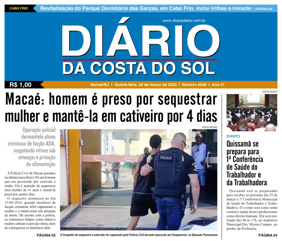 Edições Impressas Edição de quinta-feira 20/03/2025 nº 6048 Publicado em 20/03/2025 - 08:30 Escrito por Redação Notícias relacionadas: Seguinte Edição de sexta-feira 21/03/2025 nº 6049 Anterior Edição de quarta-feira 19/03/2025 nº 6047 Redação Notícias Recentes Arraial do cabo1 minuto atrás Oficina une saúde, cidadania e acolhimento em Arraial do Cabo Arraial do cabo7 minutos atrás Sucesso de público marca o primeiro dia da Arraial Expo XP Cabo Frio12 minutos atrás Prefeitura de Cabo Frio premia autoras com experiências culturais e incentivo à leitura Cidades42 minutos atrás Macaé realiza audiência pública do Projeto Macaé +20 no dia 10 de dezembro Polícia1 hora atrás Polícia Militar recupera celulares roubados após série de assaltos em Campos Educação1 hora atrás Mostra cultural do CIEP Mestre Marçal lota o Teatro de Rio das Ostras Polícia2 horas atrás Polícia prende 3 homens envolvidos com o tráfico em Rio das Ostras Cabo Frio3 horas atrás Programa “Bem Receber Cabo Frio” reforça qualidade no serviço ao visitante Cabo Frio3 horas atrás Fiscalização em área de dunas evita degradação ambiental em Cabo Frio Cabo Frio3 horas atrás Município de Cabo Frio inaugura espaço voltado à recuperação de áreas degradadas Clique Diário E. L. Mídia Editora Ltda CNPJ: 09.298.880/0001-07 Redação: Rua Tupinambás 122 Gloria – Macaé/RJ comercial@diariocs.com (22) 2765-7353 (22) 999253130 Mais lidas da semana Arraial do cabo1 dia atrás Arraial do Cabo celebra 3ª edição do Festival de Frutos do Mar com entrada livre; Carol Biazin, Ramona Rox, Liah Soares e mais Cidades3 dias atrás HFM ganha novo Pronto-Socorro moderno e ampliado em Campos Meio Ambiente1 dia atrás Ações do Programa Limpa Rio seguem em vários pontos de Rio das Ostras Polícia4 dias atrás Homem é preso em Maricá depois de matar uma pessoa a facadas nessa madrugada