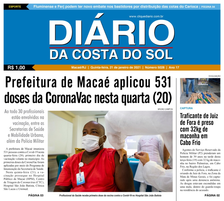 Edições Impressas Edição de quinta-feira 21/01/2021 nº 5028 Publicado em 21/01/2021 - 00:00 Escrito por Fernando Vitor Notícias relacionadas:destaque Seguinte Edição de sexta-feira 22/01/2021 nº 5029 Anterior Edição de quarta-feira 20/01/2021 nº 5027 Fernando Vitor Notícias Recentes Cabo Frio15 horas atrás Polícia investiga ataque armado ocorrido em via rural de Cabo Frio Arraial do cabo15 horas atrás Gastronomia, música e chopp artesanal agitam a Praia Grande em Arraial do Cabo Cabo Frio15 horas atrás Convento Nossa Senhora dos Anjos em Cabo Frio recebe última edição do ‘Nosso Samba’ em 2025 Cabo Frio15 horas atrás Maracatu do Tambor de Cumba movimenta Cabo Frio no Novembro Negro em Museu Charitas Cabo Frio15 horas atrás Mobilização nacional une Cabo Frio no enfrentamento à dengue Cabo Frio15 horas atrás Educação ambiental de Cabo Frio ganha destaque com placas informativas na orla Educação15 horas atrás Rio das Ostras abre inscrições para vagas em creches municipais para 2026 Cidades16 horas atrás Quissamã abre pré-matrículas para o ano letivo de 2026 nesta terça-feira (11) Cidades16 horas atrás Procon Macaé emite alerta para consumidores durante a Black Friday Polícia16 horas atrás Homem é preso em Campos acusado de abusar de criança de 5 anos Clique Diário E. L. Mídia Editora Ltda CNPJ: 09.298.880/0001-07 Redação: Rua Tupinambás 122 Gloria – Macaé/RJ comercial@diariocs.com (22) 2765-7353 (22) 999253130 Mais lidas da semana Arraial do cabo5 dias atrás Arraial do Cabo celebra 3ª edição do Festival de Frutos do Mar com entrada livre; Carol Biazin, Ramona Rox, Liah Soares e mais Cidades7 dias atrás HFM ganha novo Pronto-Socorro moderno e ampliado em Campos Meio Ambiente5 dias atrás Ações do Programa Limpa Rio seguem em vários pontos de Rio das Ostras Meio Ambiente6 dias atrás Programa do governo estadual promove limpeza de rio no Âncora, em Rio das Ostras