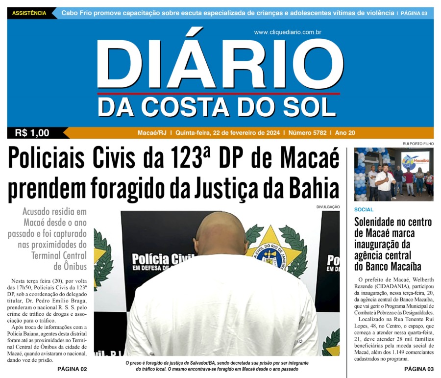 Redação: Rua Tupinambás 122 Gloria – Macaé/RJ