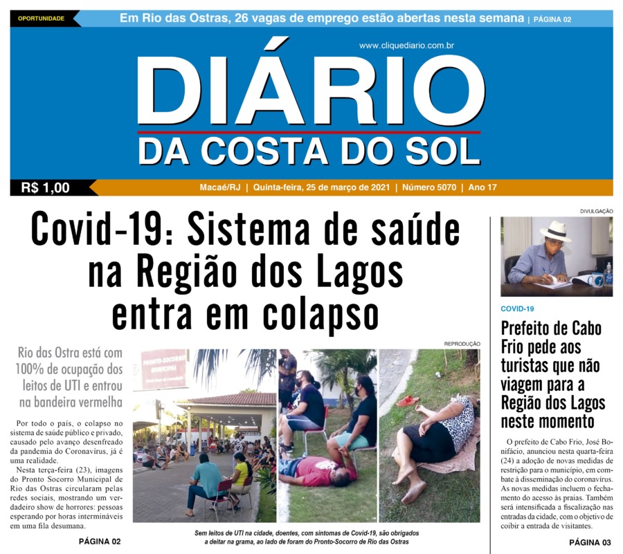 Edições Impressas Edição de quinta-feira 25/03/2021 nº 5070 Publicado em 25/03/2021 - 00:00 Escrito por Fernando Vitor Notícias relacionadas:destaque Seguinte Edição de sexta-feira 26/03/2021 nº 5071 Anterior Edição de quarta-feira 24/03/2021 nº 5069 Fernando Vitor Notícias Recentes Cidades5 minutos atrás Silva Jardim promove solenidade para entrega de Plano de Contingências 2025-2026 Segurança Pública1 hora atrás Prefeito de Rio das Ostras se manifesta após mais uma ação da PM contra barricadas do tráfico Polícia2 horas atrás Homem é detido por envolvimento com o tráfico durante patrulhamento na Nova Holanda, em Macaé Polícia2 horas atrás Polícia apreende grande quantidade de drogas durante operação no Nova Esperança em Macaé Polícia2 horas atrás Polícia recupera carro roubado antes mesmo do registro da ocorrência em Rio das Ostras Edições Impressas2 horas atrás Edição de quinta-feira 13/11/2025 nº 6211 Cidades2 horas atrás Macaé é finalista no Festival Internacional de Cinema Cristão com “A Paixão de Cristo” Cabo Frio19 horas atrás Reforma marca nova fase para o esporte cabo-friense e aniversário da cidade Arraial do cabo19 horas atrás Fórum de Arraial propõe novo modelo de desenvolvimento baseado nos 3Ds; Desvincular, Descarbonizar e Descontaminar Saúde19 horas atrás Saúde de Rio das Ostras promove mutirão de cirurgia pediátrica nessa semana Clique Diário E. L. Mídia Editora Ltda CNPJ: 09.298.880/0001-07 Redação: Rua Tupinambás 122 Gloria – Macaé/RJ comercial@diariocs.com (22) 2765-7353 (22) 999253130 Mais lidas da semana Arraial do cabo7 dias atrás Arraial do Cabo celebra 3ª edição do Festival de Frutos do Mar com entrada livre; Carol Biazin, Ramona Rox, Liah Soares e mais Meio Ambiente7 dias atrás Ações do Programa Limpa Rio seguem em vários pontos de Rio das Ostras Cidades2 dias atrás Servidores de Rio das Ostras participam de treinamento do Estado em Búzios Diversão7 dias atrás Praia do Abricó, em Rio das Ostras, sedia evento fitness nesse fim de semana